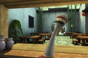 Po destroys the training hall whilst cleaning it and needs to repair it quickly before Shifu finds out. He seeks out the builder of the hall, Taotie, who holds a grudge against Shifu.